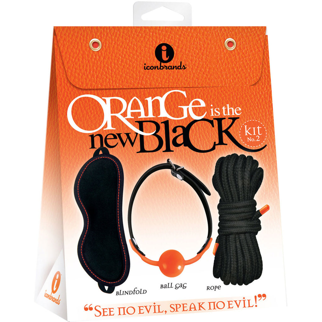 Icon Brands - Orange is the New Black See No Evil, Speak No Evil Kit number 2. Have you ever wondered what it is like to be totally submissive to your partner? Jump into sensory deprivation with Orange is the New Black’s See No Evil, Speak No Evil kit! It features a luxuriously soft velvet blindfold, seductive silicone ball gag, and wonderfully erotic cotton rope. Each accented by kinky orange stitching! Become totally immersed in a truly extraordinary kink play experience. Pleasure awaits! What are you waiting for? See No Evil, Speak No Evil, only from Icon’s Orange is the New Black. Features: Velvet Blindfold, Silicone Ball Gag, 16 feet Cotton Rope. Beautifully Hand Crafted. Sexy Orange Detail and Stitching. Perfectly Kinky Beginner Fun. Specifications: Color: Orange and Black. Materials: Velvet, Silicone and Nylon.