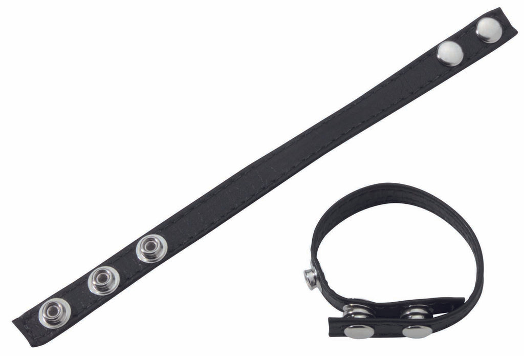Spartacus Leathers Cock Gear Leather Cock Rings. Plain Joe Black Leather Sewn Cock Ring is adjustable from 1.25 inches to 2 inches. These simple leather cock rings can adjust along three different snaps. Available with standard hardware in firm sewn black leather, soft black leather. Carefully rolled sewn garment leather gives these rings a silky texture. Cock rings when worn around the base of the penis and testicles, many users find that cock rings increase sexual pleasure. Plain Joe Cock Ring weighs .24 pound. Hand crafted leather goods from Spartacus Leathers A Passion For Quality Catalog page 28.