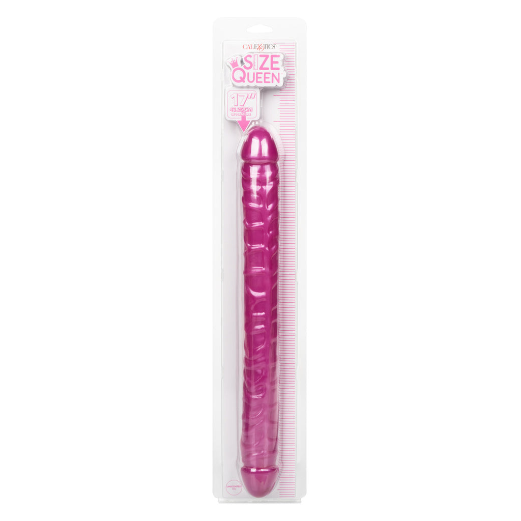 Size Queen 17 inches Ivory Light Skin Tone Extra Long Dildo from California Exotic Novelties. Indulge in your naughtiest fantasies and give yourself over to double penetrating pleasure with the powerful Size Queen 17 inches dong. The daring double ended dong has a 17 inches shaft, multi-directional design and life like textured surface. This naughty dildo has two life like ends meant to deliver thrilling double penetration for knee shaking sensations. The plump, pliable shaft moves with you and flexes with intimate curves from the multi-directional body. This big, bad dong is made for those noble size queens looking for a ride fit for your insatiable appetite.