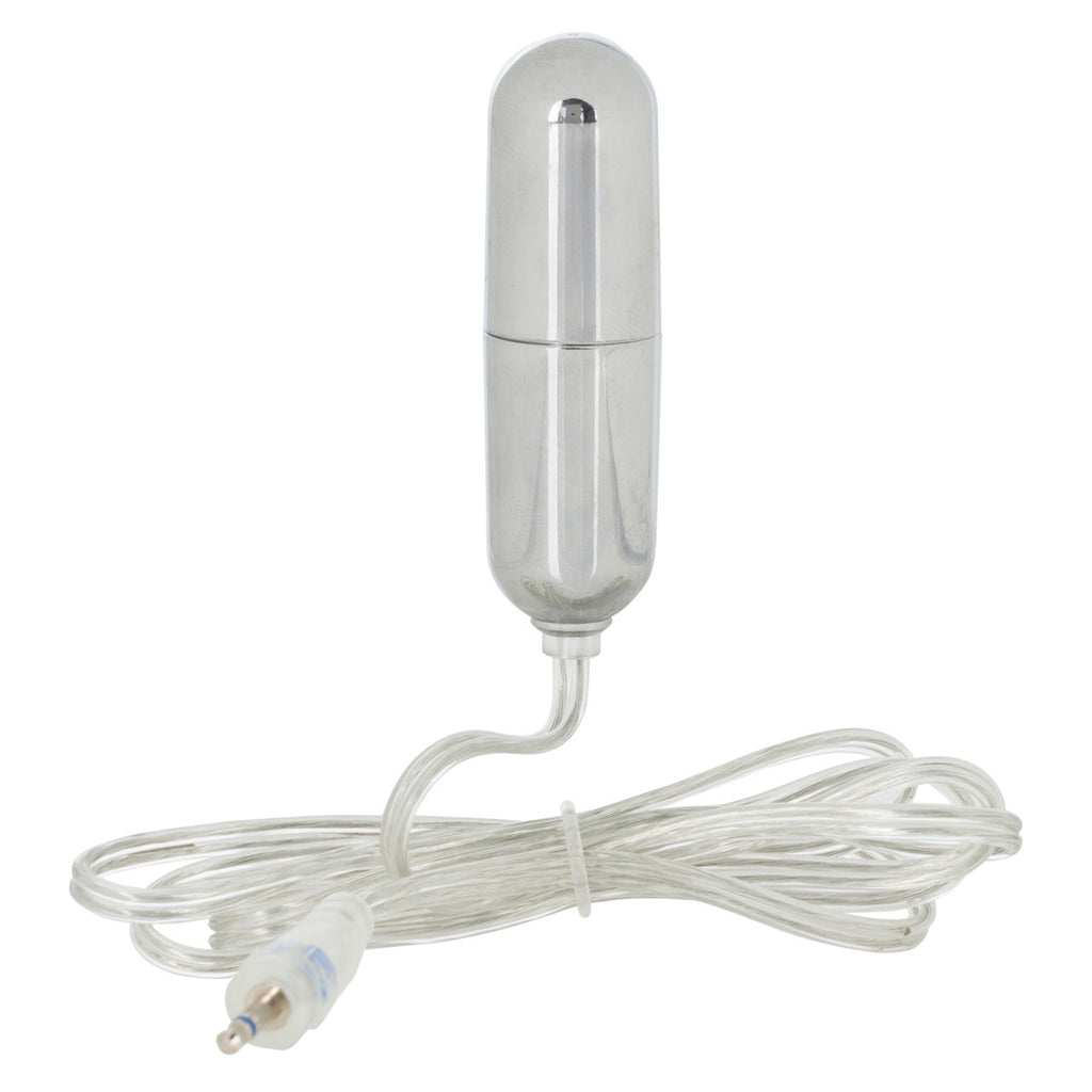 Sterling Collection Slimline Silver Bullet from California Exotic Novelties. Sophisticated women deserve sophisticated choices to match their style and deliver on their every desire. Creating your dream toy is easy with the Sterling Collection. This collection is the first interchangeable Collection of Controllers, Plug in Jacks and Bullets that are available in individual packaging for mix and match fun or in pre-designed sets for carefully curated, optimum pleasure. The Sterling Collection’s Velvet Slimline Bullet combines orgasmic power and a sleek design to produce a luxurious pleasure experience. Its slim design puts ultra targeted stimulation in the palm of your hand. Hit just the right spot on your Clitoris for intense, tailored orgasms or tease your lips with radiating waves of pleasure from the spot that sends you over the edge. The slim stimulator features a silky smooth, Velvety coating that will take your play experience to the next level of pleasure. The Collection features dozens of unique items, including Controllers, Stimulators and textured Bullet Sleeves. Pick a Controller with as many speeds as you desire to power the sensual Slim Bullet. It comes equipped with a universal Plug in Jack for easy attachment to your favorite Controller. Once you pick your Controller, explore our wide array of sensually ribbed Sleeves that offer a thrilling variety of sensations and textures to tickle, tease and please you to incredible orgasms. Bullet comes with a cord Plug in Jack. Bullet Vibrator is made using phthalate free, non-toxic materials ABS Plastic with Velvet Cote Polyurethane PU Cote. Please note this item does not come with a Power Supply or Controller. Sold separately. You will need SE109921 or SE109922 to operate. Bullet Vibrator measures 2.25 inches long by .6 inch wide. Bulk weight: 1.1 ounces. Always clean before and after use. Rinse with warm water. Pat dry before storing. 1 year warranty. Sterling Collection Velvet Slimline Bullet is a registered trademark for California Exotic Novelties. Sex toys and sexual wellness. Categories: Vibrators, Bullets, Eggs, Sex Toys for Women, Vibrating Bullets and Eggs. 2023.