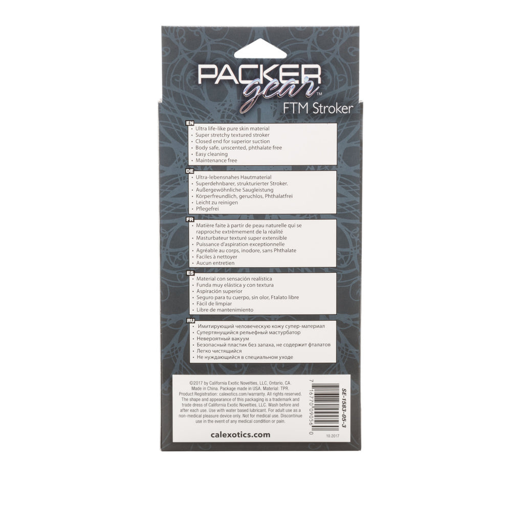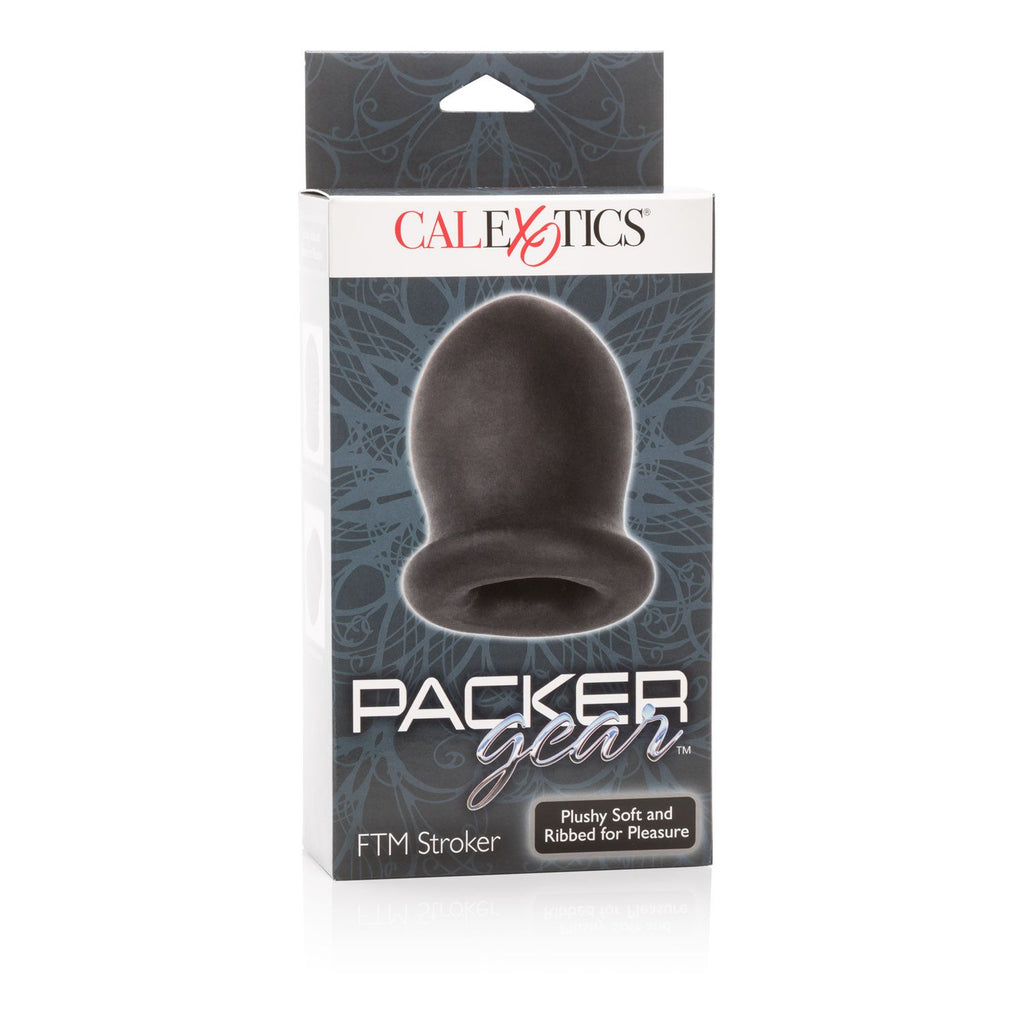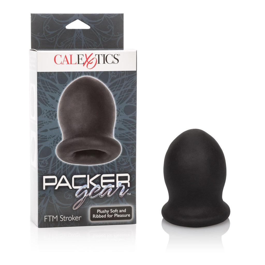 Packer Gear FTM Stroker Black from California Exotic Novelties. Plushy soft and ribbed for your pleasure. The Packer Gear FTM Female to Male Stroker is a thrilling stroker created with a textured chamber and super stretchy material for toe curling suction with every stroke. The closed end Sleeve creates a powerful simulation oral sensation with a soft, stretchy and very life like Pure Skin Thermoplastic Rubber TPR for a truly explosive experience. Whether you are indulging with a lover or enjoying yourself while you travel, the compact 2 inches masturbator toy fits discreetly into any suitcase with enough stretch to accommodate even the biggest member. The hypoallergenic premium Thermoplastic Rubber TPR is body safe, unscented and phthalate free to keep you most sensitive spots, happy and healthy. Before and after use, wash with soap and warm water and then spray with a Universal Toy Cleaner. Water resistant, this device means pure pleasure - never mind a splash or two. A perfect fit is all yours with this stretchy and comfortable delight. As simple to clean as it is easy to use, you will find cleaning a snap. Bulk weight 2.3 ounces. Materials Thermoplastic Rubber. Measurements 2.75 inches by 2 inches Stroker. Categories: Masturbators, Sleeves, Rings, Solo Masturbators, Masturbation Sleeves, Fleshlight and Packers. 2023.