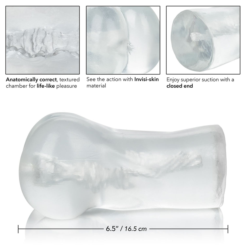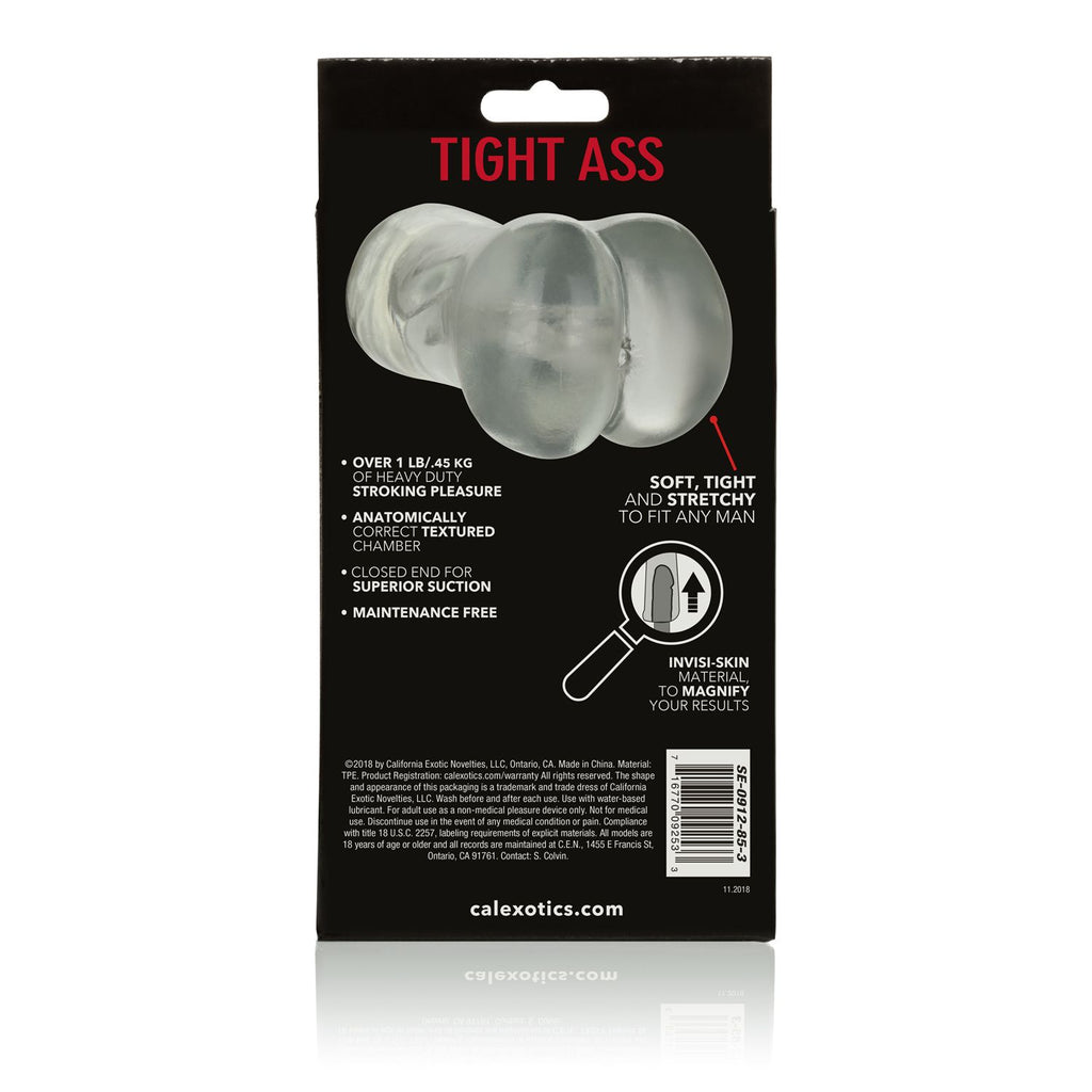 Stroke It Tight Ass Clear Male Masturbation Device from California Exotic Novelties. The Stroke It collection brings you the Tight Ass Stroking Sleeve, made to thrill with every extra tight Stroke. Dive deep into over 1 pound of heavy duty Stroking pleasure with erotically detailed lips and anatomically correct chamber. Our plump Stroker Sleeve is great for anyone wanting a little extra oomph in their solo play. Over 1 pound of Invisi Skin material magnify your pleasure tool and deliver the heavy duty, pounding pleasure you have been craving. The indulgent Stroker has a textured, anatomically correct chamber for explosive stimulation. Use this close ended Sleeve with ample lubrication for powerful suction worthy of your naughtiest fantasies. Invisi-Skin Thermoplastic Elastomer TPE is a super soft, ultra stretchy material with a unique, life like feel delivering pure satisfaction in every Stroke. This durable Sleeve is easy to use, easy to clean and requires no special care. Prior to and after each use, wash Sleeve internally and externally with warm water and soap, then disinfect with the Universal Toy Cleaner. The Stroke It collection brings you the Tight Ass Stroker Sleeve meant to thrill with your favorite Stroking option. Dive deep into over 1 pound of heavy duty stroking pleasure an ultra tight textured chamber. The plush stroker gives you the best of this world with a realistic entry. No matter which you choose, the ultra tight textured chamber creates a wonderland of pleasure for any member willing to slip inside.
