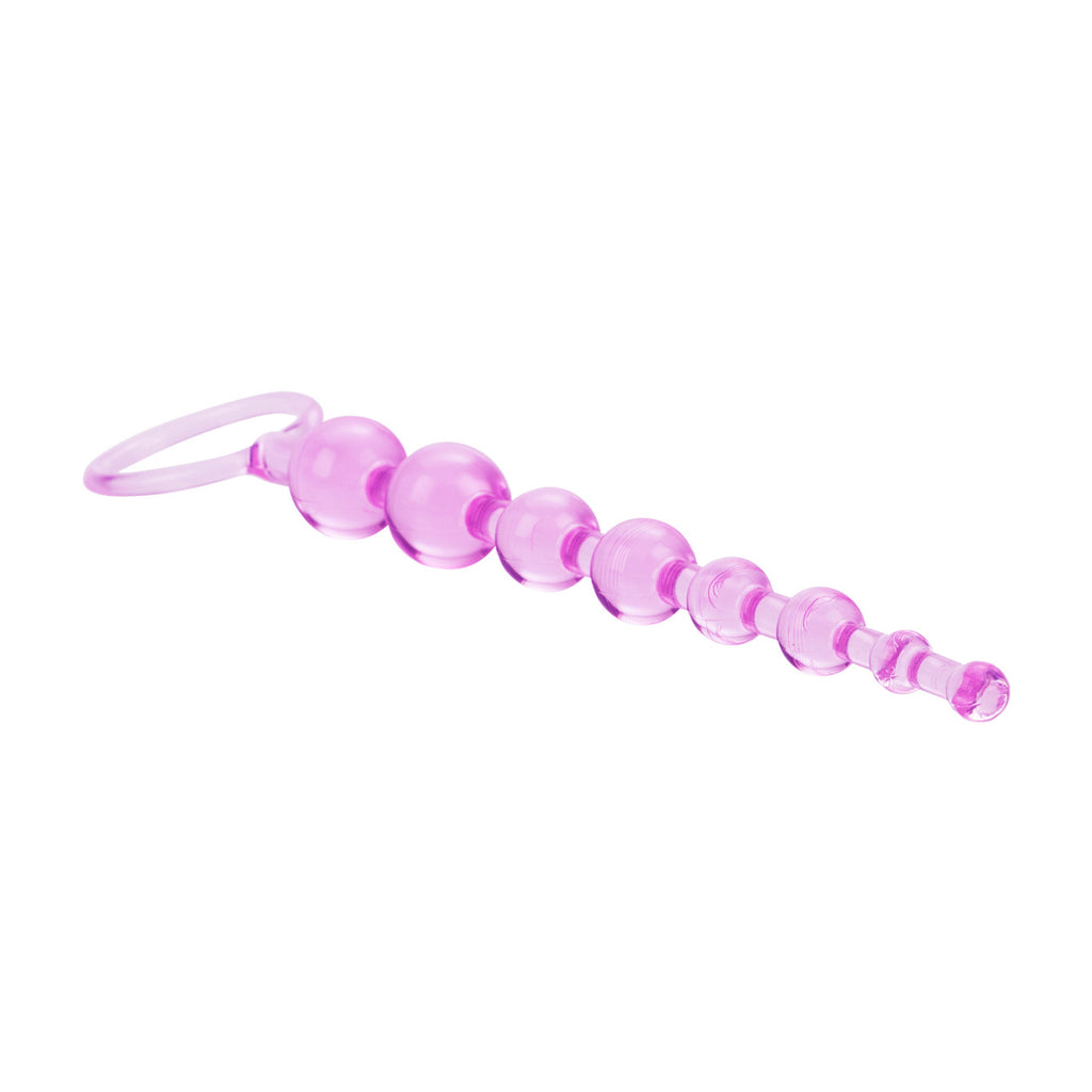 First Time Love Beads . Velvety soft pleasure products designed for first time or experienced users. Make it a memorable experience with the First Time Collection! Soft anal love beads. Easy-to-use. Sized for the beginner. Flexible, slim, graduated pleasure beads with an EZ retrieval ring. Phthalate-free, non-toxic materials PVC measures 8.25 inches by .75 inches wide. Bulk weight: 1.1 ounces. First Time Love Beads from California Exotic Novelties.
