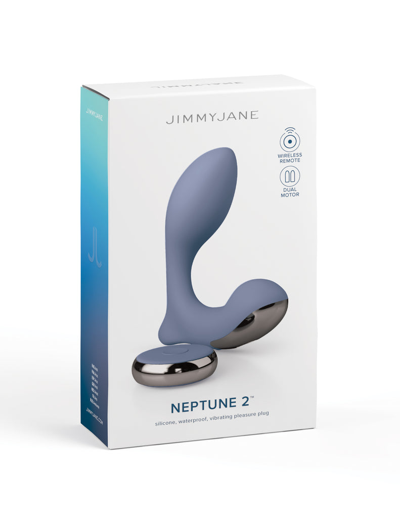 JimmyJane Neptune 2 Prostate Massager from Pipedream Products. Meet our new prostate stimulator the Neptune 2 P-Spot Massager. Powerful vibrations improve sexual performance and can trigger multiple prostate orgasms. This waterproof design can be worn solo or during sex for incredible results. The unique, flexible design surrounds sensitive areas with concentrated vibrations. Two individual motors create powerful, fulfilling vibrations. Choose between seven high performing vibration modes and three intensity levels for your every mood. 70 minute run time. Simple, intuitive controls. Remote control to maximize couples’ play. Used by men, women and couples. Great for prostate and perineum stimulation. Waterproof, fully submersible and bath friendly. Magnetic USB Charging Cord.