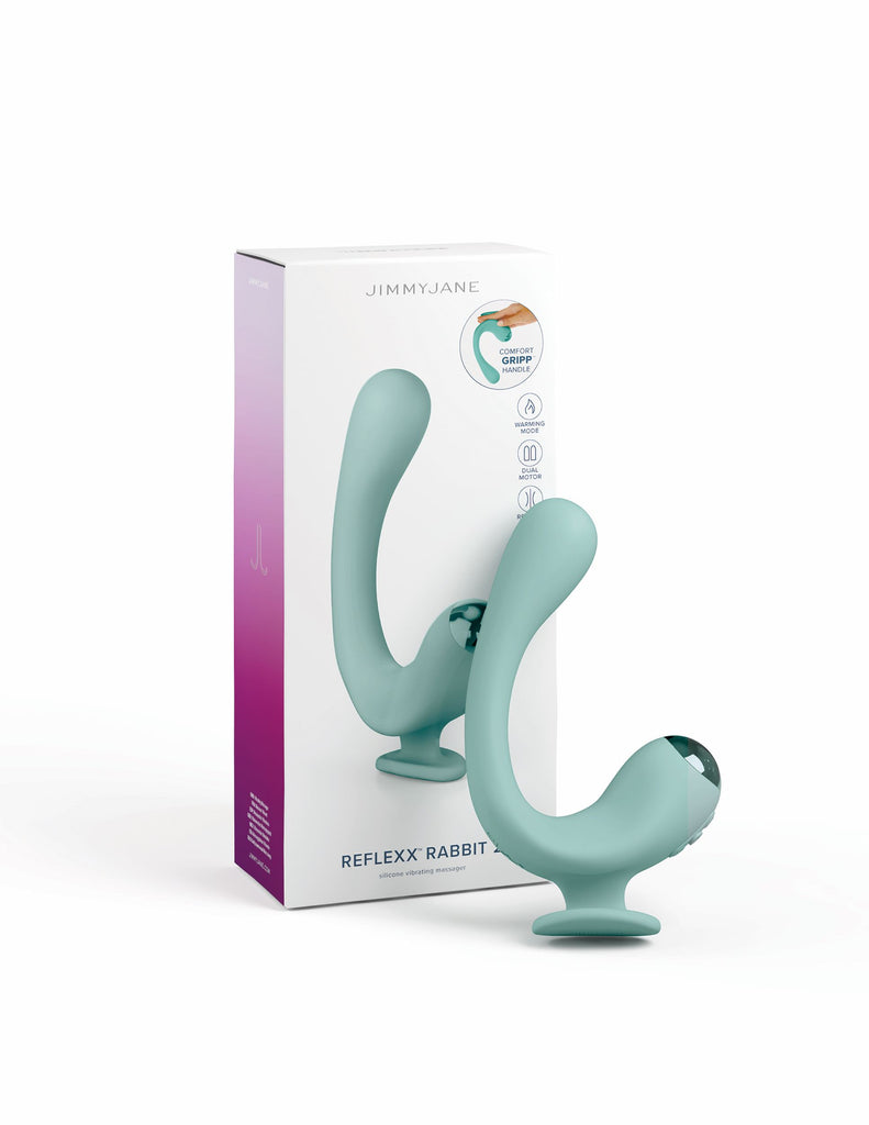 JimmyJane Reflexx Rabbit Vibrator 2 from Pipedream Products. Searching for a vibrator that is designed to optimize your pleasure? Well, you can stop looking! It is here, with the Reflexx Rabbit 2. This vibrator's hooked design satisfies two very important places of pleasure your G-Spot and your Clitoris. You do not have to settle for toys that only pleasure one or the other. The Reflexx Rabbit 2 is also straightforward and easy to use a bonus in a world where many Vibrators can look a little, well, intimidating. Plus, it solves another big problem found in plenty of Vibrators. The lack of a proper finger grip. The Reflexx Rabbit 2's finger holder allows you to rest your finger comfortably without the fear of a finger slip or strain. Gone is the frustration of having to test out different hand positions while trying to use your vibrator, it is perfect for mature women. It is not only the design that makes this vibrator a top choice. It is also got dual, independently controlled motors that each have ten high performing vibration modes. This means there is a different vibration mode for every mood you may find yourself in. With this Vibrator, you are 100% in control of your pleasure journey. To top it all off, this vibrator comes with a warming mode. With this trendy feature, the vibrator warms up to just above body temperature in a matter of minutes. The warm sensation can help your body relax, so you can fully enjoy some you time after a long, hard day. Even better, it can warm you up in the right places during the winter season. The Reflexx Rabbit 2 is made of super soft and flexible phthalate free, latex free Silicone. Have peace of mind and body knowing this Vibrator is free of any damaging materials or chemicals often found in lower quality vibrators. The Vibrator is also ultra-modern, with no batteries needed. Instead, after you are done having a pleasure session, you can recharge the Reflexx Rabbit 2 Vibrator. Once it is juiced up, you can enjoy yet another satisfying experience. Dual independently controlled motors allow you to personalize your pleasure. The hooked design stimulates the G-Spot and Clitoris simultaneously. Comfortable finger holder for an easy no slip grip. Each vibrating motor features ten high performing vibration modes for your every mood. Warming mode brings the vibrator just above body temperature in a few minutes.