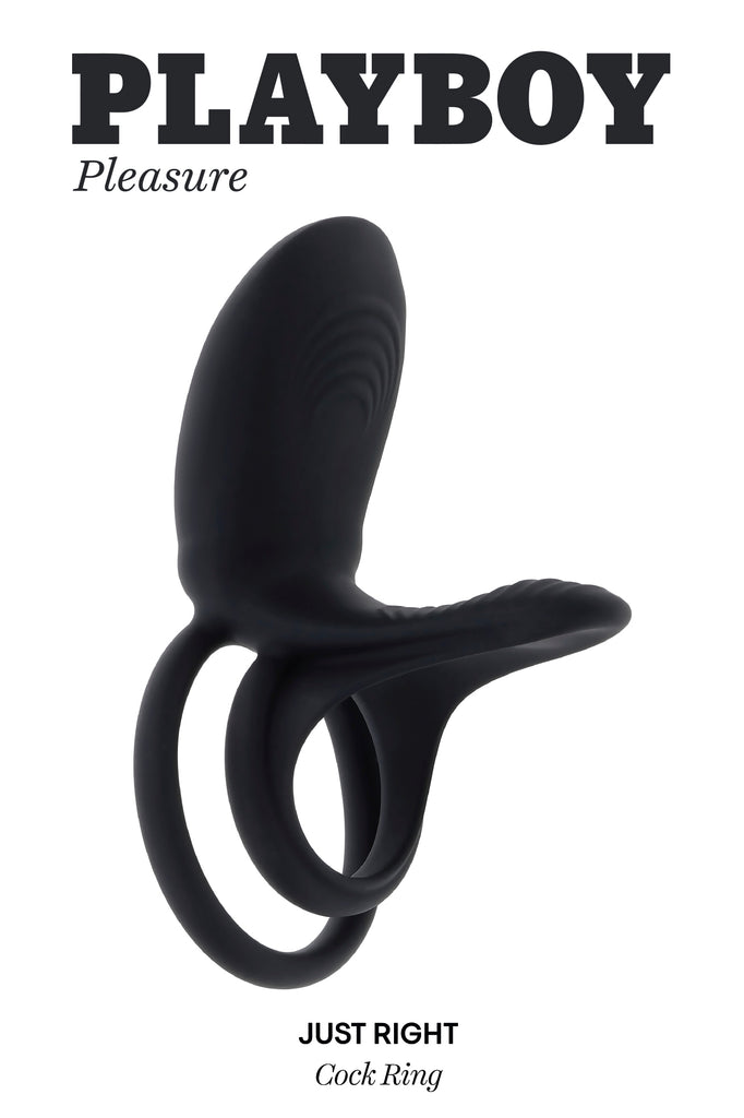 Playboy Pleasure Just Right from Evolved Novelties. Freedom to Play: this Cock Ring offers additional girth from its flexible enhancing sheath and will have you feeling Just Right. Increase stamina and sensation with the stretchy Silicone double rings that wrap around the penis and balls for just the right amount of tightness. When worn during partner play your partner can enjoy added stimulation from the deep vibrations emanating from two powerful motors. Panel details: Play with me key feature: girth enhancing sheath, penis and ball rings. Vibration: 10 vibrating speeds and rhythms. Material body safe Silicone. Phthalate free and Latex free. Waterproof vibrations. 5 years warranty. Size specifications: height 4.6 inches, depth 3 inches, width 2.4 inches. Rechargeable vibrations. Cock Ring charges via a USB port on one end. The other end connection is a magnetic 2 metal rings on the back of the cock ring. Easy to plug up for charging. 5 year warranty. Categories: Vibrators, Love Rings, Sex Toys for Men, Couples Cock Rings, Vibrating, Rechargeable Love Rings, Men's Cock and Ball Gear. 2023.