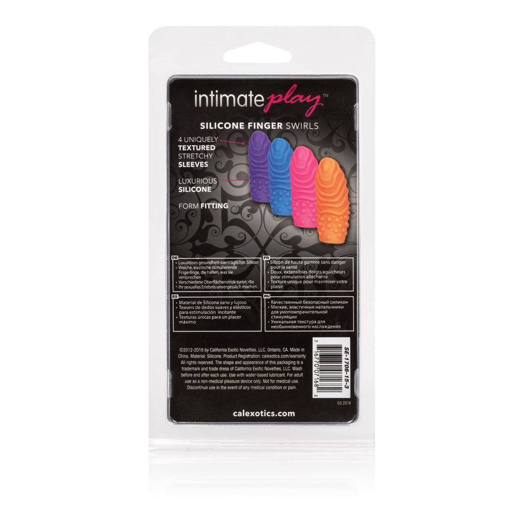 Intimate Play Silicone Finger Teasers Swirl Set of 4 form fitting, uniquely textured, luxurious Silicone Finger Teasers. Take your ordinary finger massages to the next level with the Silicone Finger Teasers. These soft Teasers deliver everything you love about fingers on that sensitive clitoris, between your lips, and caressing your G-Spot with, of course, the added ecstasy of incredible texture, ultra soft materials, and feminine, flirty colors. The Silicone Finger Teasers set comes with four colors to suit every mood. Try the bright and bubbly Orange, fun and flirty Pink, sensual Purple, or gorgeous deep Blue on for size. The Silicone Finger Teasers make the perfect toy to spice up both solo and partnered play. When you are flying solo, just slide one of these form fitting, luxurious teasers onto your preferred finger and delight in the new sensations it brings to your ordinary play sessions. You and your partner will both love their ability to tease and tantalize you in all new ways with those signature finger moves you love. The Silicone Finger Teasers feature beautiful, flowing swirl designs that rub, swirl, massage, tease, and please you as you or your partner run the raised designs along your favorite spots and bring you to new levels of orgasmic pleasure. Spice up your ordinary finger play and take your pleasure to new heights with the Posh Silicone Finger Teasers! Easy to use. Slip Sleeve on to a Finger. Finger extensions. Safe and pure for body and pleasure. Made using phthalate free, non-toxic materials Silicone. Finger sleeves measure 2.25 inches long by 1 inch wide. Bulk weight 0.6 ounce. Always clean before and after use. Pat dry before storing. Categories: Probes, Sticks, Rods, Sensual Kits, Sex Toys for Women, G-Spot Stimulators, Vibrator Sleeves. 2023.